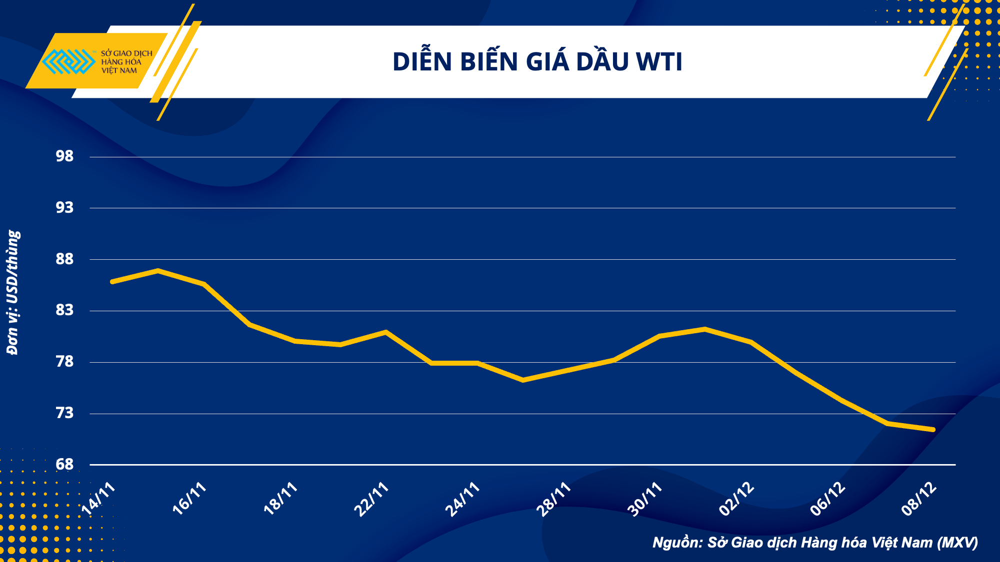 Kết thúc phiên 08/12, giá dầu thô WTI giảm 0,76% về 71,46 USD/thùng, giá dầu thô Brent giảm 1,32% về 76,15 USD/thùng.