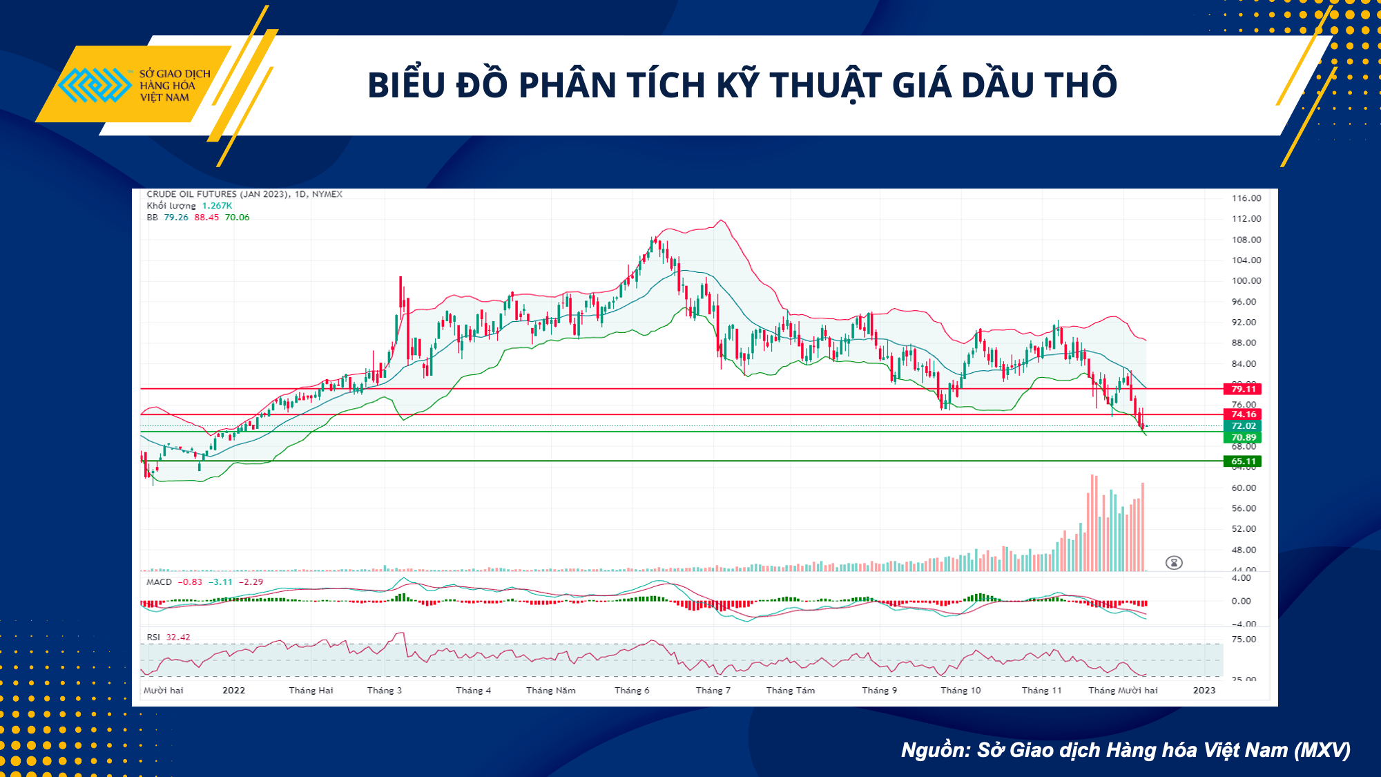 Về mặt kỹ thuật, giá dầu đang giảm mạnh trong các phiên gần đây, với khối lượng tăng dần đều. Bollinger Band tiếp tục mở rộng và hướng về phía dưới. Chỉ số RSI dù quay đầu nhưng đã tạo mức đáy thấp hơn. Trong hôm nay, nhà đầu tư có thể đợi giá hồi lên khu vực 73 – 73.5 USD rồi mở vị thế bán với kỳ vọng chốt lời ở mức 70.9 USD.
