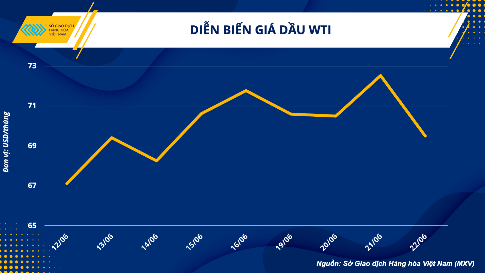 Giá dầu đã có phiên lao dốc trong ngày giao dịch 22/06, với dầu WTI đánh mất hơn 4% giá trị xuống còn 69,5 USD/thùng, xoá bỏ mọi đà tăng tích luỹ trong vòng 1 tuần qua. Giá dầu Brent cũng giảm 3,86%, chốt phiên ở mức 74,14 USD/thùng.