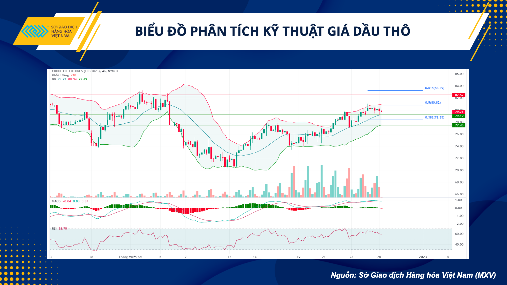 Giá dầu WTI vẫn chưa vượt qua ngưỡng kháng cự tâm lý 80 USD, và cũng là mức Fibonacci 50,0. Trên khung H4, giá gặp sức ép bán khi gặp cạnh trên của Bollinger Band. Giá vẫn duy trì được ở nửa trên trong vòng một tuần qua, và với việc thị trường chưa có một tin tức nào quá tiêu cực xuất hiện, nhà đầu tư có thể canh mua khi giá test lại cạnh giữa ở mức 79,3 USD, với kỳ vọng chốt lời ở mức 80,3 USD.