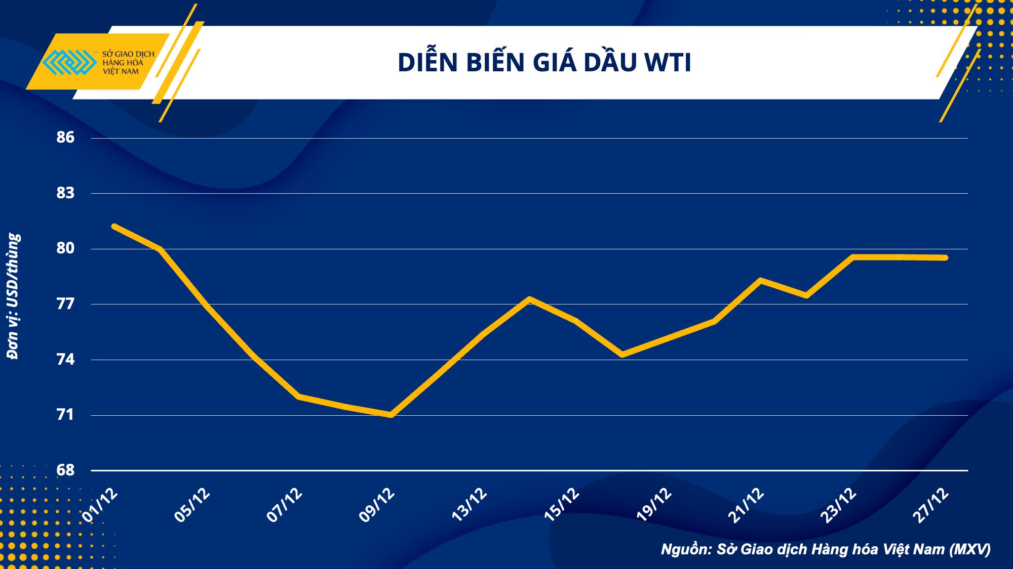 Giá dầu ít thay đổi trong phiên giao dịch đầu tiên sau kỳ nghỉ lễ, phản ánh phần nào tâm lý lưỡng lự của các nhà đầu tư trước một loạt các tin tức cơ bản về cung cầu. Kết thúc phiên 27/12, giá dầu WTI chỉ giảm nhẹ 0,04% về 79,53 USD/thùng, trong khi đó giá dầu Brent tăng nhẹ 0,21% lên 84,68 USD/thùng.