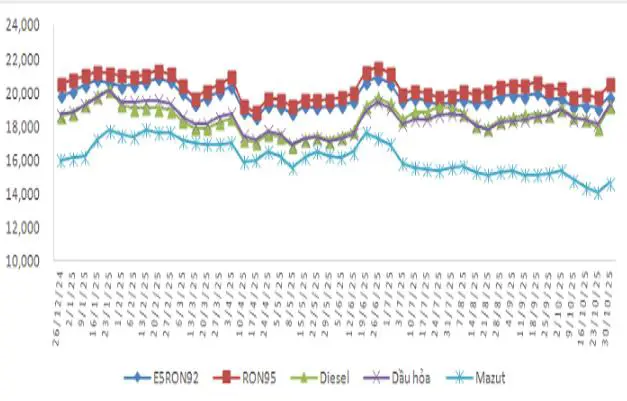 Thị trường xăng dầu thế giới kỳ điều hành lần này (từ ngày 23/10/2025 - 29/10/2025) chịu ảnh hưởng của các yếu tố chủ yếu như: Mỹ tuyên bố trừng phạt 2 tập đoàn dầu khí lớn nhất của Nga; các cuộc đàm phán thương mại mới của Mỹ với Ấn Độ và Trung Quốc; OPEC+ dự kiến tăng nhẹ sản lượng khai thác dầu trong tháng 12; xung đột quân sự giữa Nga với Ucraina vẫn tiếp diễn, tập trung vào cơ sở năng lượng của nhau… Các yếu tố nêu trên khiến giá xăng dầu thế giới trong những ngày vừa qua có diễn biến tăng mạnh.