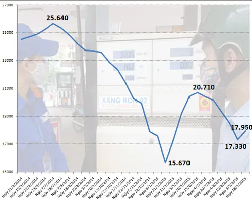Chiều 16/9, lãnh đạo một số doanh nghiệp đầu mối, hiện chênh lệch giữa giá cơ sở và giá bán lẻ xăng dầu đang vào khoảng 500 đồng/lít. Theo đó, đợt điều chỉnh giá xăng dầu tới đây (dự kiến vào 18/9), giá xăng có thể tăng khoảng 500 đồng/lít.