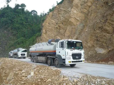 Xuôi con đường cheo leo, dốc đứng từ cao nguyên đá Đồng Văn về Hà Giang, chúng tôi gặp những chiếc xe bồn “cõng” trên lưng téc xăng to đùng mang biểu tượng chữ P lặc lè bò từng bước ngược lên các huyện miền núi xa xôi.