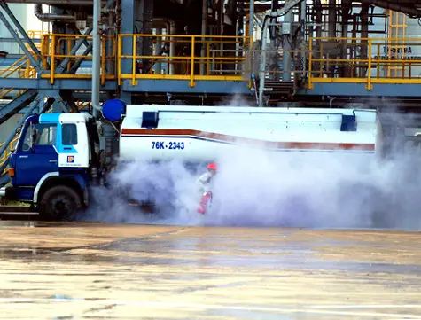 Một chiếc xe bồn đang tiếp liệu thì bất ngờ chảy tràn, gây cháy dữ dội ngay gần khu bồn chứa ở nhà máy lọc dầu Dung Quất, công trình có vốn đầu tư lên đến 3 tỷ USD. Đây là tình huống giả định cho cuộc diễn tập diễn ra hôm nay.