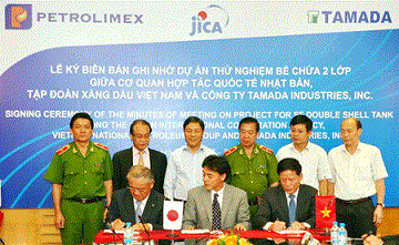 Tin từ Tổ chức Hợp tác Quốc tế Nhật Bản (JICA) cho biết, chiều 26/7, cơ quan này đã cùng Tập đoàn Xăng dầu Việt Nam (Petrolimex) và Công ty Tamada Industries, Inc. (Tamada) chính thức ký kết biên bản ghi nhớ hợp tác triển khai dự án thử nghiệm bể chứa 2 lớp phòng tránh rò rỉ chất nguy hại.