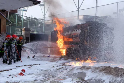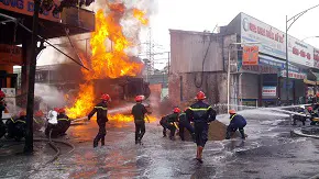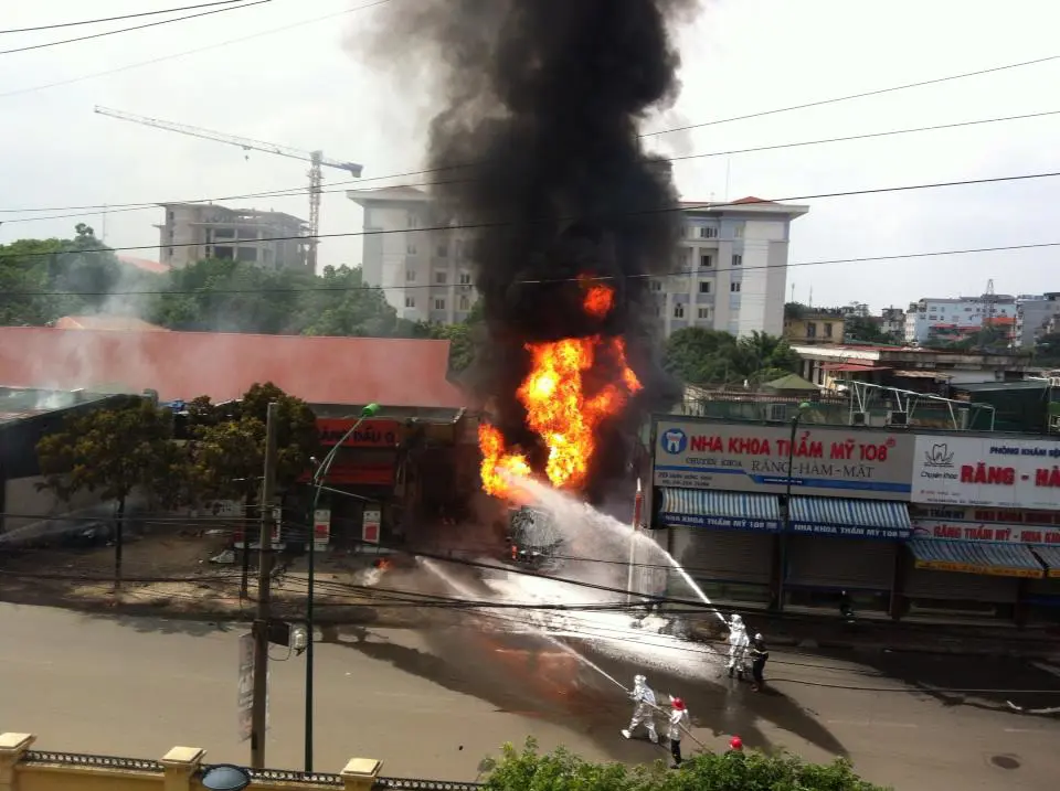 Hàng trăm mét khối xăng trong xe bồn, trong các bể chứa nằm sâu dưới lòng đất bất ngờ gặp nguồn nhiệt, bốc cháy dữ dội suốt 5 giờ đồng hồ, bất chấp nỗ lực của hàng trăm Cán bộ chiến sĩ (CBCS) công an.