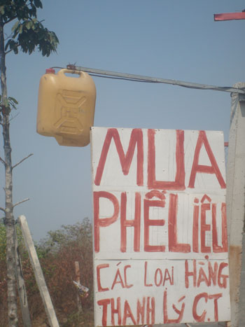 Trên tuyến đường cao tốc Mỹ Phước – Tân Vạn, vẫn còn hàng chục điểm vừa kinh doanh phế liệu vừa mua bán dầu DO. Các chủ cơ sở này thường treo một chiếc can trước cửa tiệm có chữ “DO”.