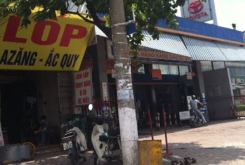 Một cây xăng trên phố Nguyễn Công Trứ liền kề với xưởng sửa chữa ô tô.