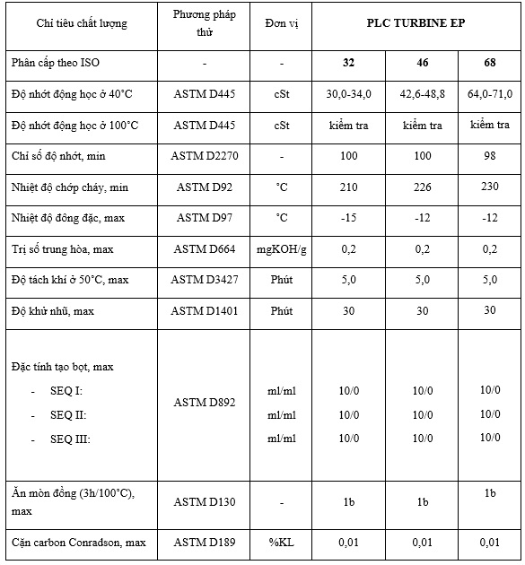 Nhằm thỏa mãn tốt nhất nhu cầu của các Khách hàng về sản phẩm dầu nhờn Tuabin cao cấp, Tổng công ty hóa dầu Petrolimex (PLC) đã nghiên cứu, sản xuất sản phẩm dầu Turbine EP chất lượng cao, sử dụng để bôi trơn các tuabin khí, tuabin hơi nước làm việc dưới điều kiện khắc nghiệt và các thiết bị phụ trợ như hệ thống điều khiển tuabin, hệ thống dầu làm kín, các khớp nối tuabin và các máy nén khí kiểu tuabin.