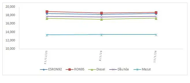 Thị trường xăng dầu thế giới kỳ điều hành lần này (từ ngày 08/01/2026 - 14/01/2026) chịu ảnh hưởng của các yếu tố chủ yếu như: tình hình bất ổn tại Iran; căng thẳng gia tăng giữa Mỹ và Iran; tồn kho dầu thô và xăng của Mỹ tăng; Venezuela bắt đầu nối lại hoạt động xuất khẩu dầu thô; xung đột quân sự giữa Nga với Ucraina vẫn tiếp diễn, tập trung vào cơ sở năng lượng của nhau… Các yếu tố nêu trên khiến giá xăng dầu thế giới trong những ngày vừa qua có diễn biến tăng, giảm tùy từng mặt hàng.