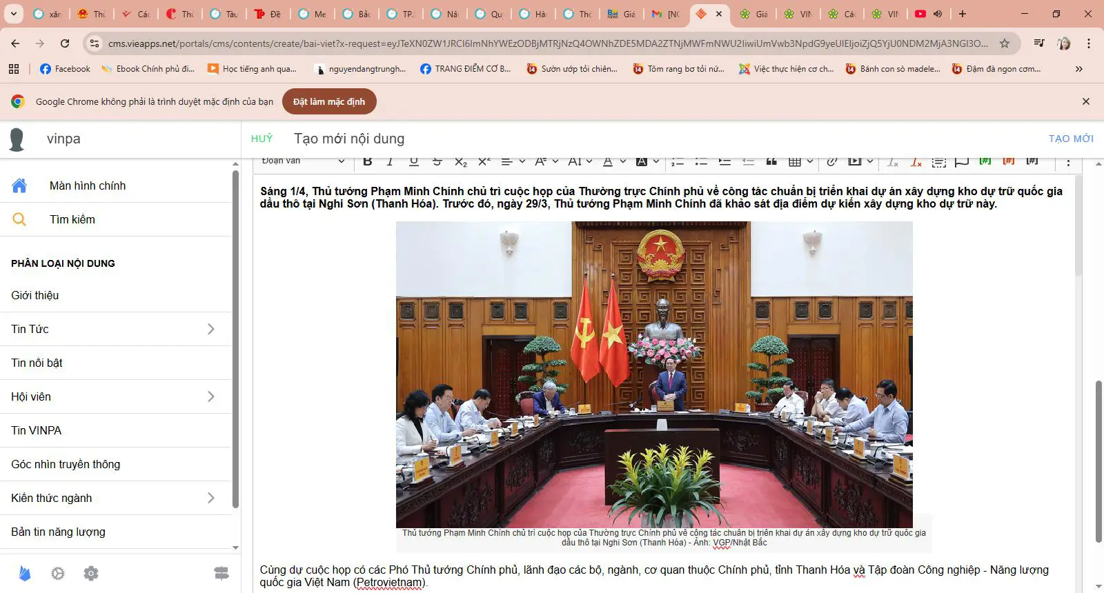Sáng 1/4, Thủ tướng Phạm Minh Chính chủ trì cuộc họp của Thường trực Chính phủ về công tác chuẩn bị triển khai dự án xây dựng kho dự trữ quốc gia dầu thô tại Nghi Sơn (Thanh Hóa). Trước đó, ngày 29/3, Thủ tướng Phạm Minh Chính đã khảo sát địa điểm dự kiến xây dựng kho dự trữ này.