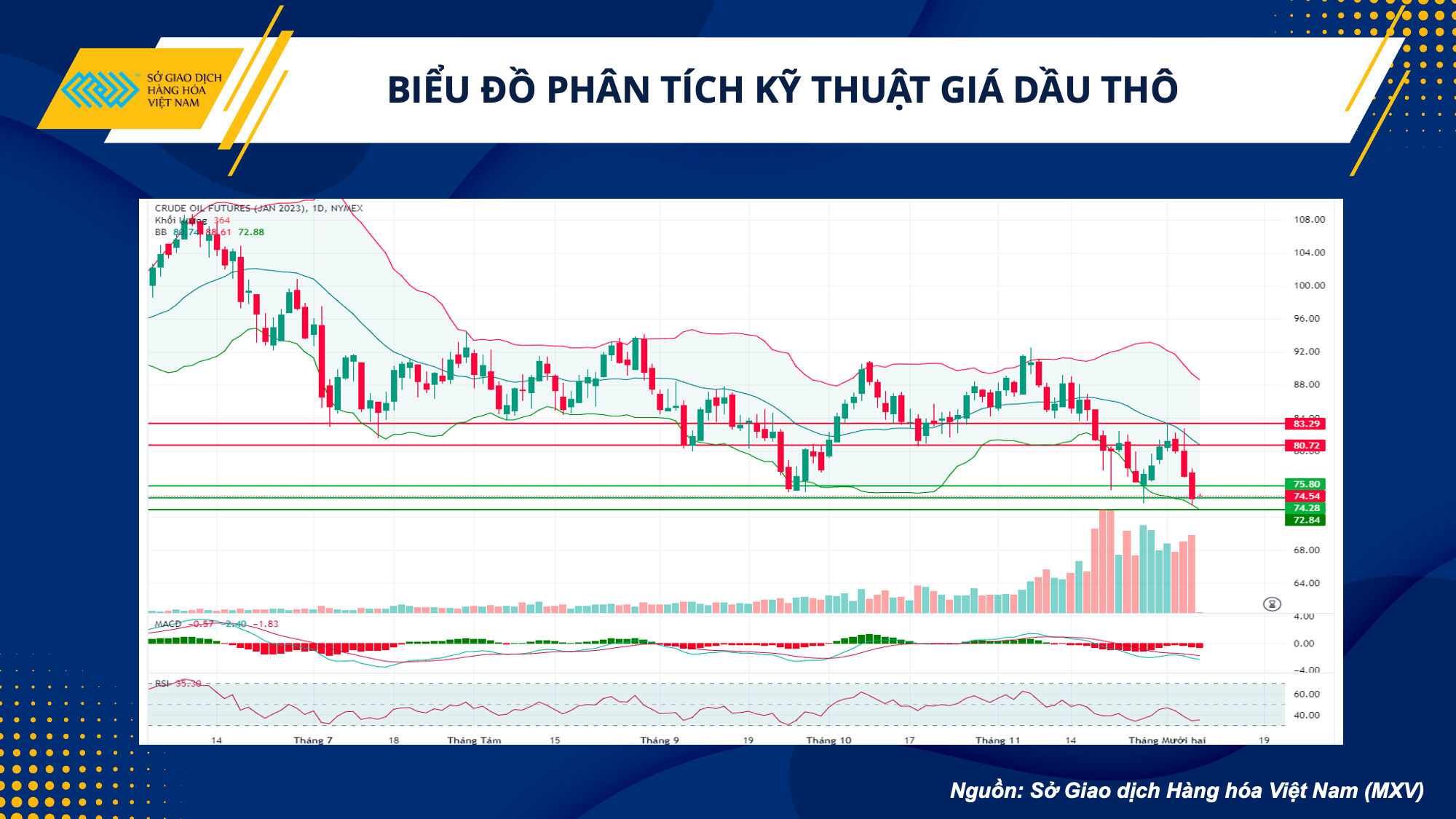 Kết thúc phiên 07/12, giá dầu thô WTI tiếp tục giảm 3,48% về 74,25 USD/thùng, giá dầu thô Brent đánh mất mốc 80 USD, giảm 4,03% còn 79,35 USD/thùng.