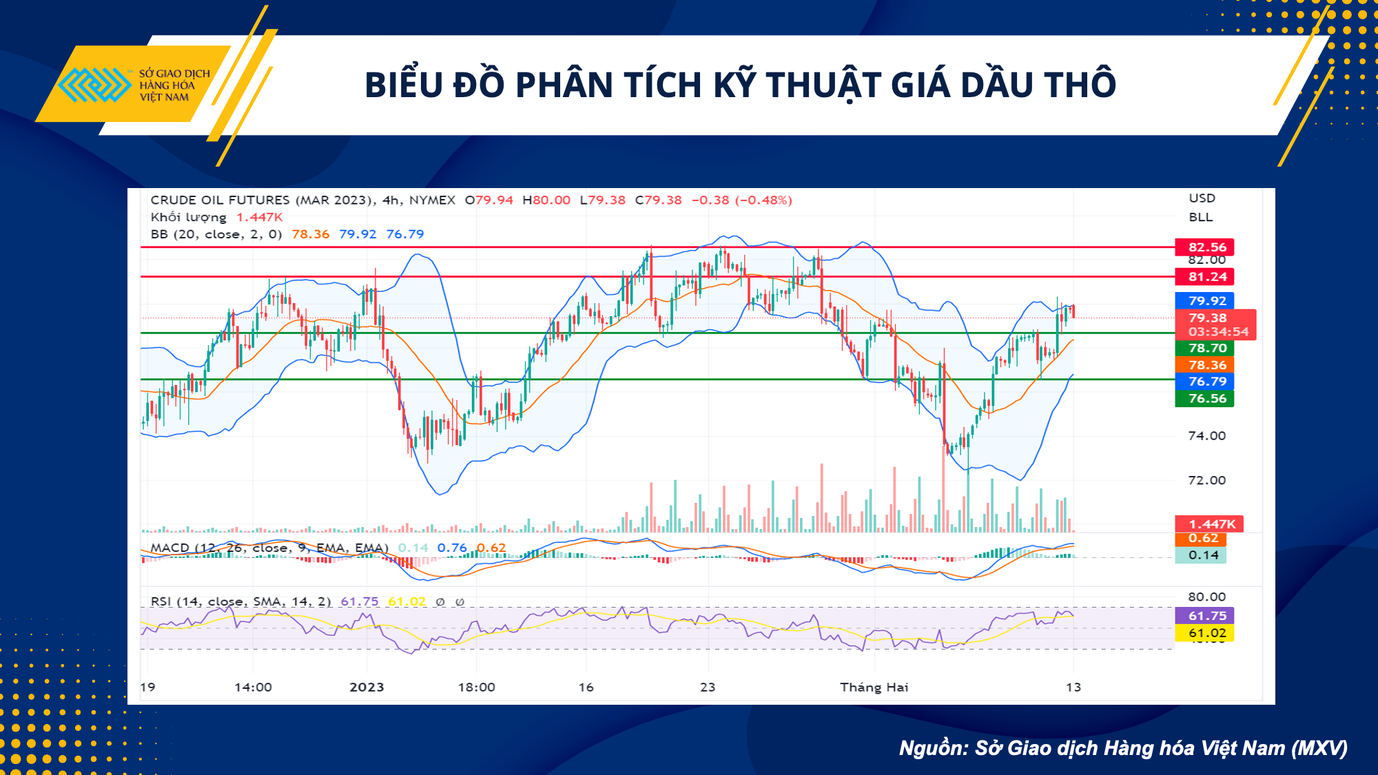 Về mặt kỹ thuật, giá dầu vượt canh giữa của dải Bollinger Band trên khung Daily, MACD cắt lên đường Signals sát đường Zero, cho thấy động lực tăng giá. Trên khung H4, giá chạm cạnh trên dải Bollinger Band và nhiều khả năng sẽ test lại cạnh giữa ở hỗ trợ 78,7 USD/thùng. Các nhà đầu tư có thể mở mua ở mức này với kỳ vọng chốt lời tại 81,2 USD/thùng.