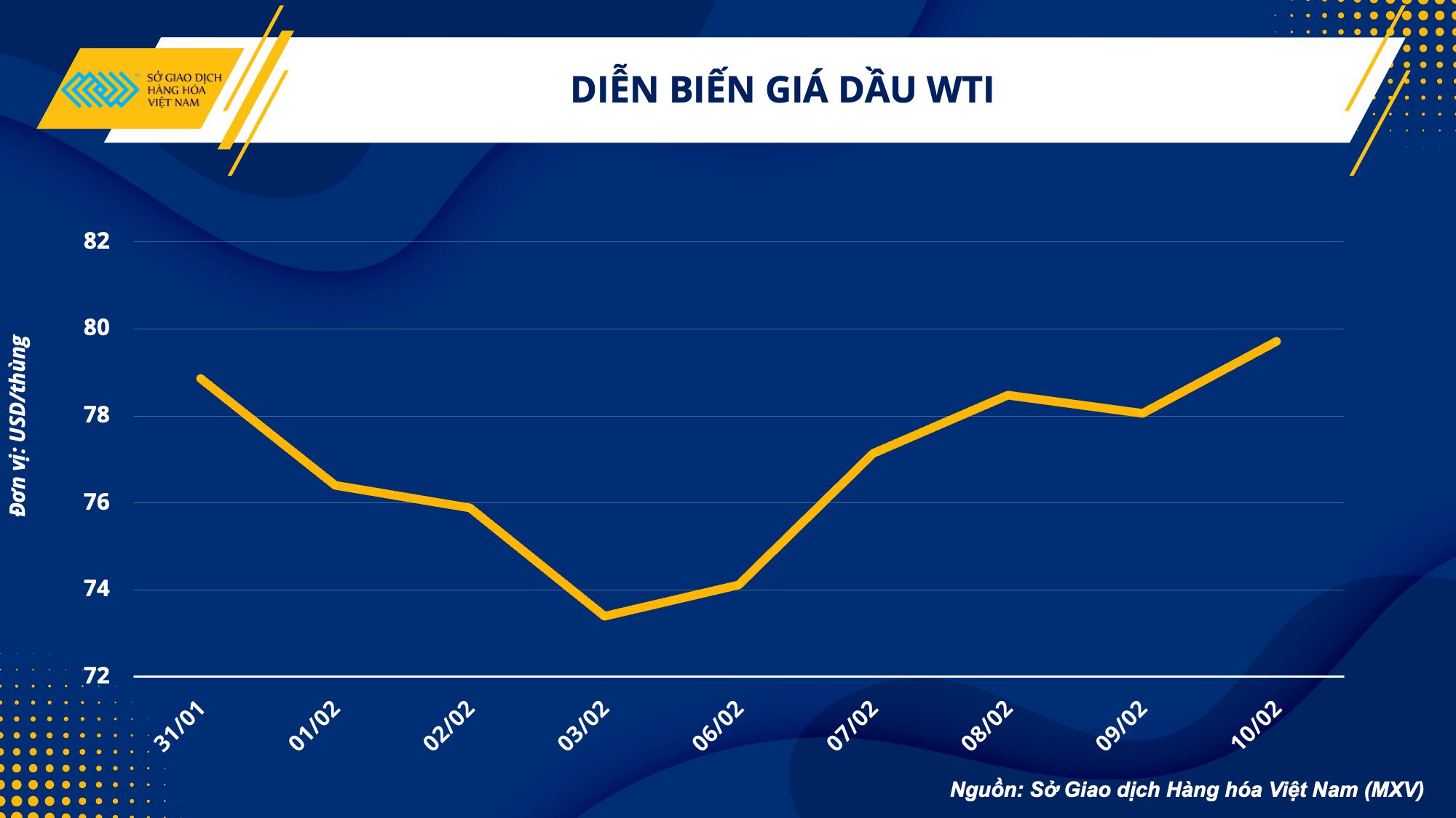 Kết thúc tuần giao dịch ngày 6/2 -12/2, tất cả 5 trong tổng số 5 mặt hàng trong nhóm năng lượng đồng loạt đóng cửa trong sắc xanh, trong đó cả 2 loại dầu thô dẫn đầu đà tăng trên thị trường với mức tăng đều trên 8%. Cụ thể, giá dầu WTI tăng 8,63% lên mức 79,72 USD/thùng, giá dầu Brent tăng 8,07% lên mức 86,39 USD/thùng. Những lo ngại về nguồn cung và sự lạc quan hơn về nhu cầu tiêu thụ đã kéo giá dầu phục hồi mạnh mẽ trong tuần qua.