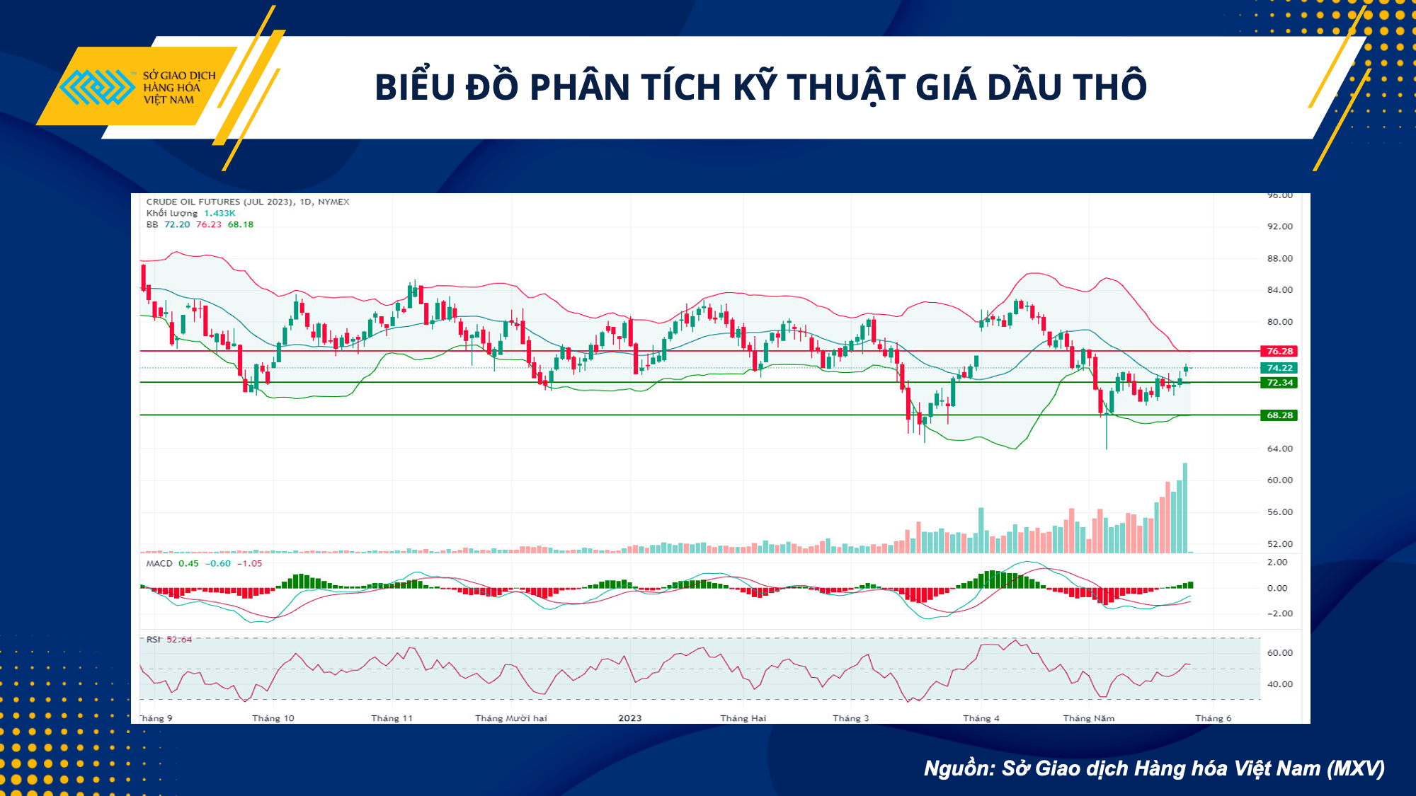 Về mặt kỹ thuật, giá dầu duy trì được đà tăng ổn định sau khi vượt qua cạnh giữa của Bollinger Band với khối lượng giao dịch được cải thiện, và chỉ số RSI đã vượt qua mức 50. Nhà đầu tư có thể tiếp tục nắm giữ vị thế mua, hoặc mở vị thế mới trong khoảng 73,8 – 74,1 USD, với kỳ vọng chốt lời ở mức 75,9 USD. Cắt lỗ khi giá giảm về dưới 73,3 USD.