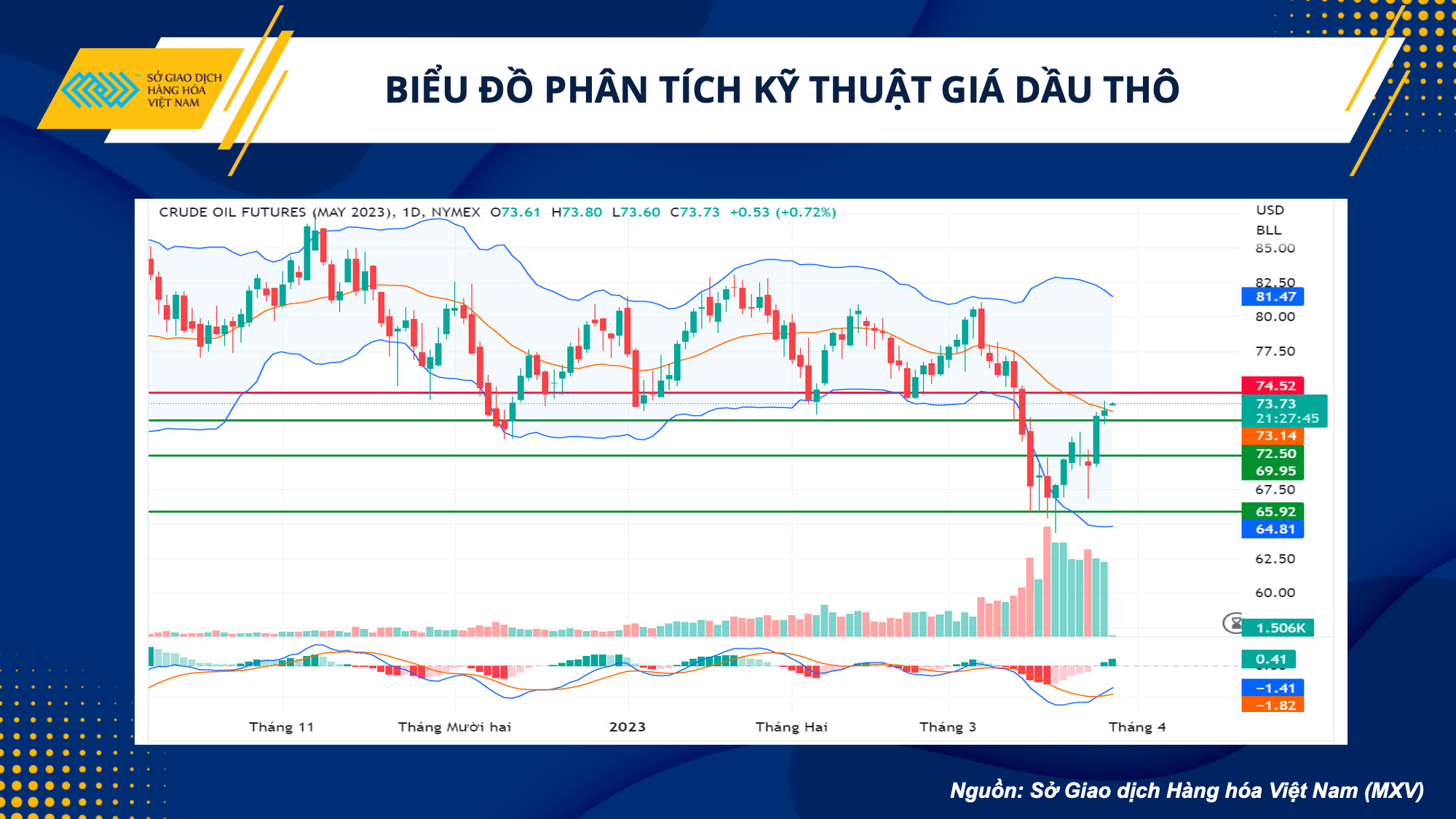 Rạng sáng nay theo giờ Việt Nam, báo cáo từ Viện Dầu khí độc lập Mỹ (API) cho thấy tồn kho dầu thô thương mại Mỹ giảm mạnh 6.1 triệu thùng, mức giảm trong tuần mạnh nhất kể từ tháng 12 năm ngoái. Tồn kho xăng cũng giảm mạnh 5.9 triệu thùng, cho thấy nhu cầu có sự cải thiện hơn so với các tuần trước đó. Thông tin này có thể sẽ tiếp tục hỗ trợ cho giá dầu trong phiên sáng và hướng tới mục tiêu tiếp theo tại mốc 75 USD/thùng đối với dầu WTI.