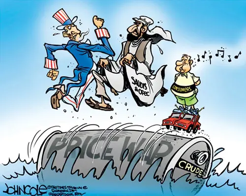 Không nghi ngờ gì nữa, giá dầu sẽ trở thành “nhân vật” chính trên “sân khấu” kinh tế - chính trị thế giới trong năm 2015 sau khi liên tục phá đáy gây “sốc” chưa từng thấy trong 5 năm qua, ở những tháng cuối 2014. Nhìn bề mặt, rõ ràng Arập Xêút là nước phất cờ trong cuộc chiến giá dầu hiện tại nhưng kỳ thực, những ai đi sai nhịp, hoặc đã đuối sức mà vẫn cố lắc người theo vũ điệu vàng đen đều có thể bị bật ra khỏi cuộc chơi một cách đau đớn, kể cả “kẻ cầm trịch”.