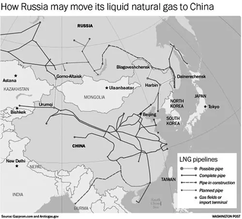 Hợp đồng cung cấp khí đốt trị giá 400 tỉ USD với thời hạn 30 năm đã được ký giữa Tập đoàn Dầu khí Nga - Gazprom và Tập đoàn Dầu khí Trung Quốc - CNPC dưới sự chứng kiến của Tổng thống Nga Vladimir Putin và Chủ tịch Trung Quốc Tập Cận Bình nhân chuyến thăm cấp nhà nước của của Tổng thống Nga Vladimir Putin tới Bắc Kinh.