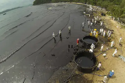 Tính đến ngày 30-7, nhiều mảng dầu thô trong vụ rò rỉ khoảng 50.000 lít dầu thô từ một đường ống của nhà máy lọc dầu PTT Global Chemical Plc (PTTGC) trên Vịnh Thái Lan ở ngoài khơi cách thành phố Rayong khoảng 20km, đã bắt đầu dạt vào bờ biển Ao Phrao của đảo du lịch Ko Samet nổi tiếng tại Thái Lan.