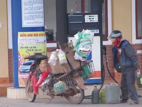 Chiếc xe khách lên vùng Lao Bảo (H. Hướng Hóa, Quảng Trị) chật như nêm, dừng lại một cây xăng để tiếp nhiên liệu nhưng phải đợi, bởi hàng chục chiếc xe máy đang xếp hàng chờ đổ xăng. Nếu chỉ có vậy thì đâu phải đợi lâu, song mỗi chiếc xe máy đổ trên trăm lít xăng thì quá sức tưởng tượng và cả sự kiên nhẫn.
