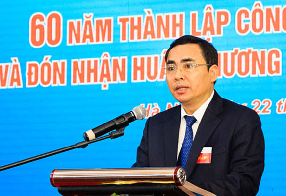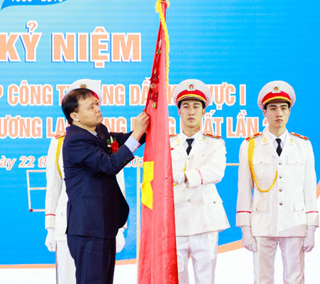 Thừa ủy quyền Chủ tịch nước, Thứ trưởng Bộ Công Thương Đỗ Thắng Hải gắn Huân chương Lao động hạng Nhất lên Cờ truyền thống của Petrolimex Hà Nội.