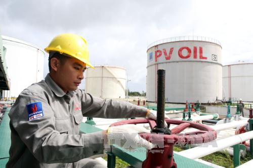 Vận hành thiết bị cung cấp xăng dầu tại PV Oil Nhà Bè. Ảnh: Huy Hùng – TTXVN.