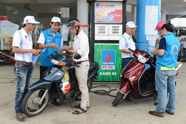 Công ty lọc hoá dầu Bình Sơn (BSR) phối hợp tuyên truyền về xăng E5 tại các cửa hàng xăng dầu Đà Nẵng - Ảnh: BSR