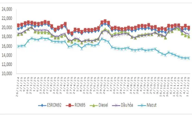 Giá dầu thế giới sụt giảm trong phiên giao dịch ngày 11/12, khi nhà đầu tư tập trung vào tiến triển đàm phán hòa bình Nga – Ukraine và lo ngại về lượng xăng, dầu tồn kho lớn tại Mỹ.