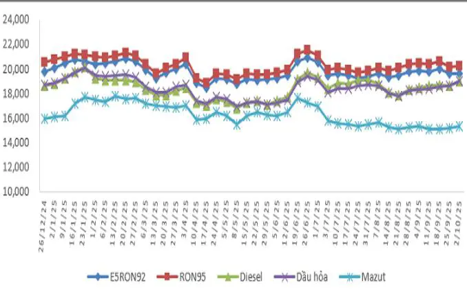 Thị trường xăng dầu thế giới kỳ điều hành lần này (từ ngày 25/9/2025 - 01/10/2025) chịu ảnh hưởng của các yếu tố chủ yếu như: OPEC+ tăng sản lượng khai thác dầu trong tháng 10 và dự kiến tiếp tục tăng trong tháng 11; Chính phủ Mỹ ngừng nhiều hoạt động; tồn kho dầu thô của Mỹ tăng; xung đột quân sự giữa Nga với Ucraina vẫn tiếp diễn, Ucraina gia tăng tấn công vào cơ sở năng lượng của Nga… Các yếu tố nêu trên khiến giá xăng dầu thế giới trong những ngày vừa qua có diễn biến lên, xuống tùy từng mặt hàng.